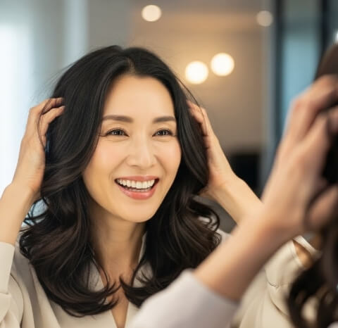 ウィッグなしで出かけられる日が増えて、自分の髪でおしゃれできることが何よりの喜びです。年齢を理由に諦めなくてよかったと思わせてくれるケアだと思います!