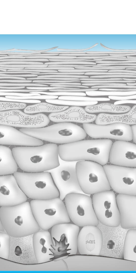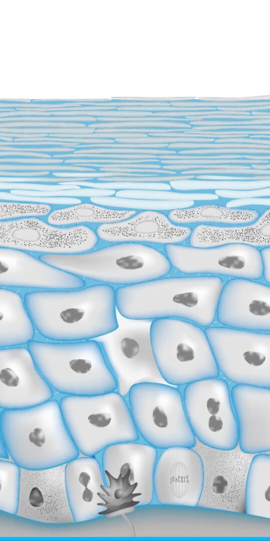 一時的に細胞と細胞の間に隙間を作り、基底層や真皮層にコラーゲン・ヒアルロン酸などの美容成分を肌深部へ導入します。