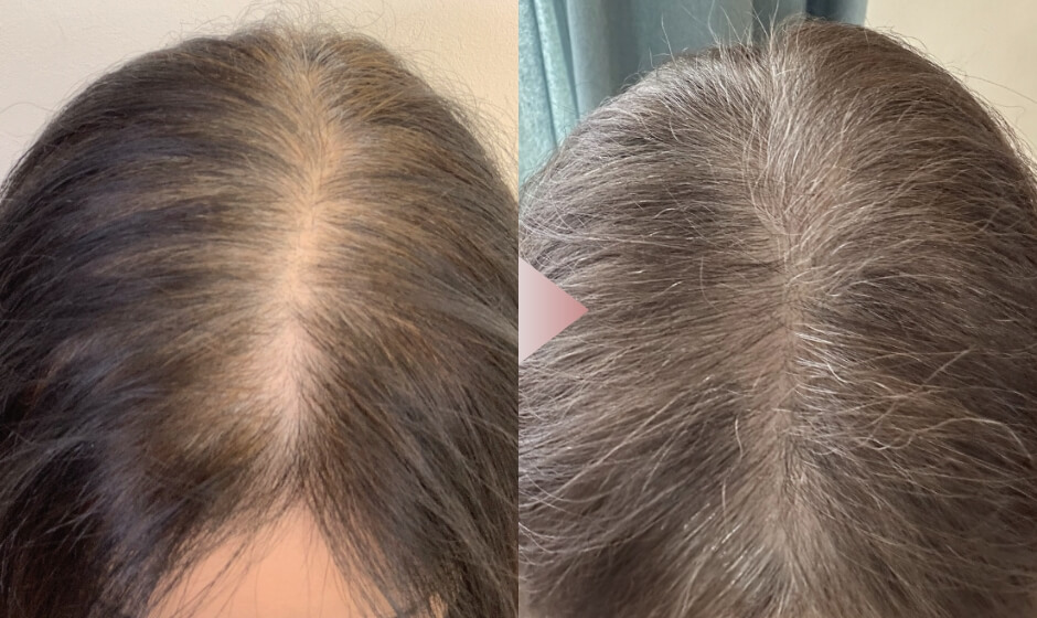 分け目の薄さが気になって、人の視線も怖くて…。でも、サロンケアを始めて6ヶ月。気づいたら帽子がなくても平気になりました!本当にうれしかったです。