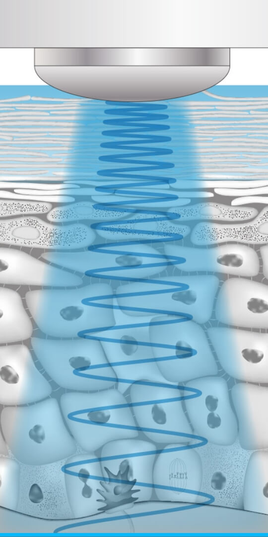 一時的に細胞と細胞の間に隙間を作り、基底層や真皮層にコラーゲン・ヒアルロン酸などの美容成分を肌深部へ導入します。